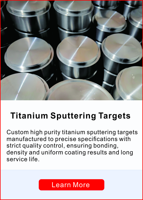 Custom titanium sputtering targets for PVD coating, vacuum deposition and thin film applications. Sunrise Industrial supplies precision-machined titan
